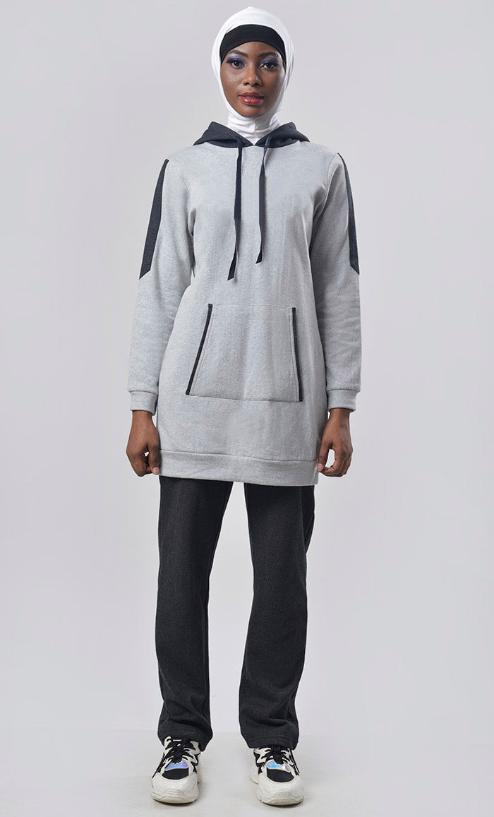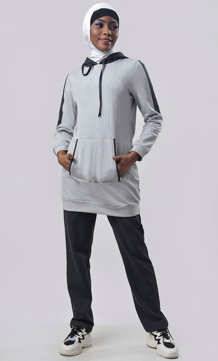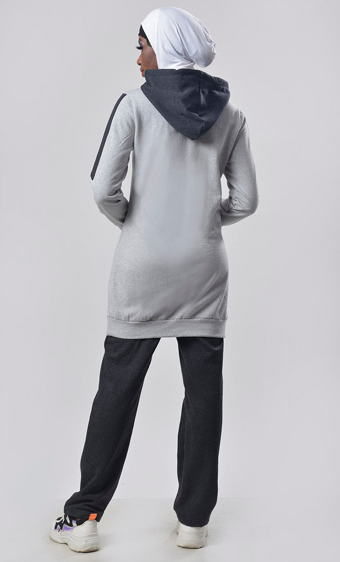 *يتضمن بيجامة رمادية مع سترة (طقم مكون من قطعتين)