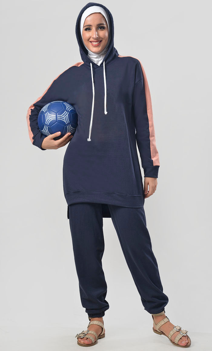 مجموعة ملابس رياضية بغطاء رأس من الصوف
