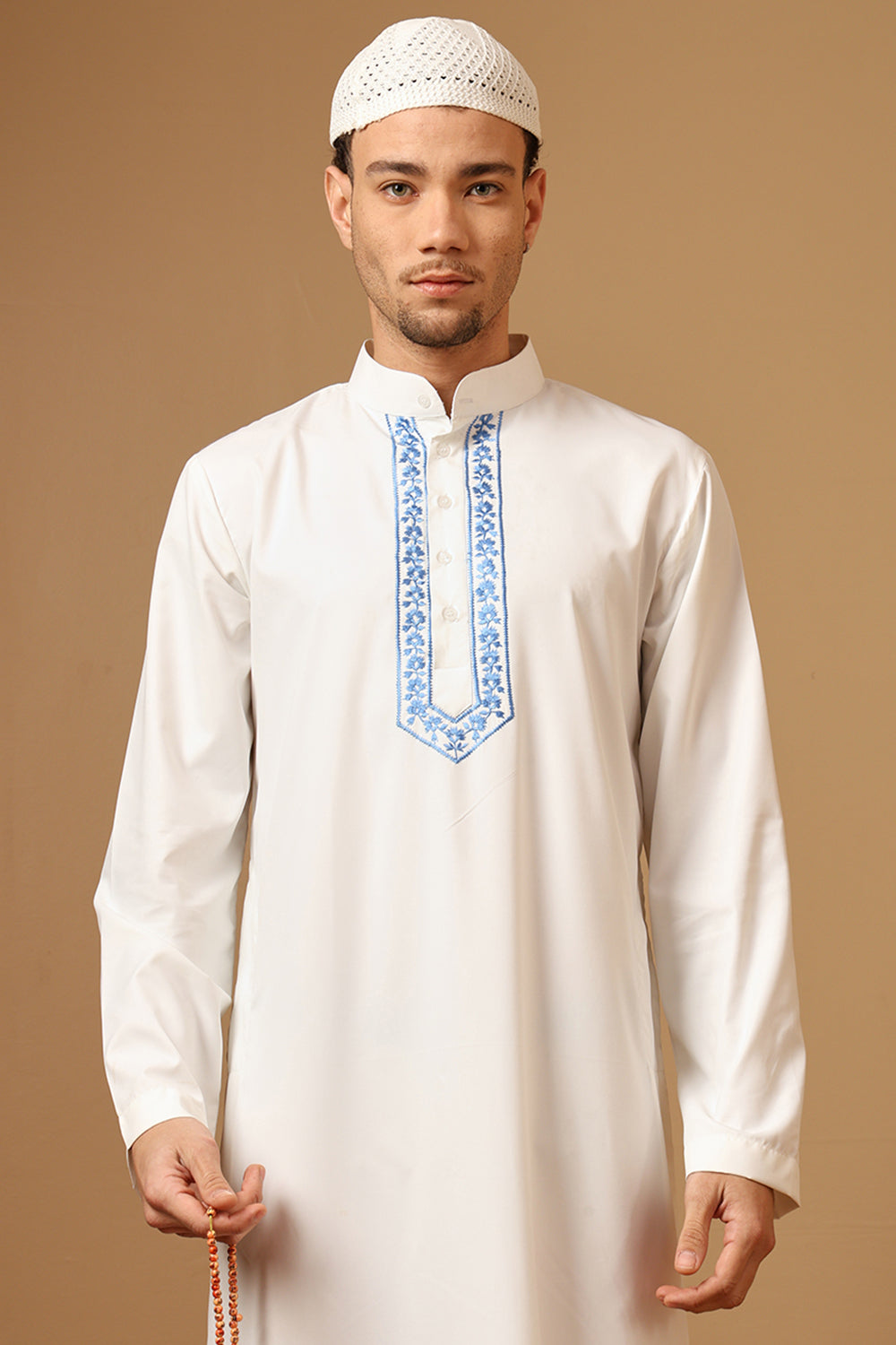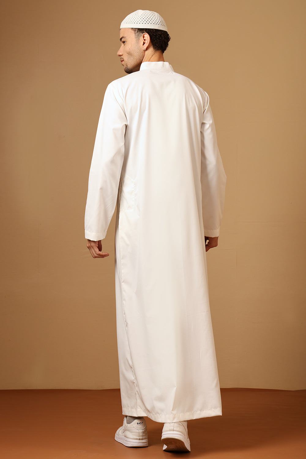 صُمم هذا الثوب اليومي للراحة والأناقة، وهو مصنوع من نسيج قطني عالي الجودة، مما يوفر التهوية والمتانة للارتداء طوال اليوم. يوفر خط العنق المستدير بفتحة بسحاب سهولة الارتداء، بينما يضيف التطريز الأبيض على الرقبة لمسة راقية وأنيقة. يتميز هذا الثوب بأكمام كاملة لتغطية متواضعة وجيوب على الجانبين من أجل التطبيق العملي، وهو مثالي للصلاة والنزهات غير الرسمية والأنشطة اليومية.