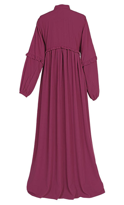 Super Red Ruffle Detailing Abaya With Pockets - Final Sale