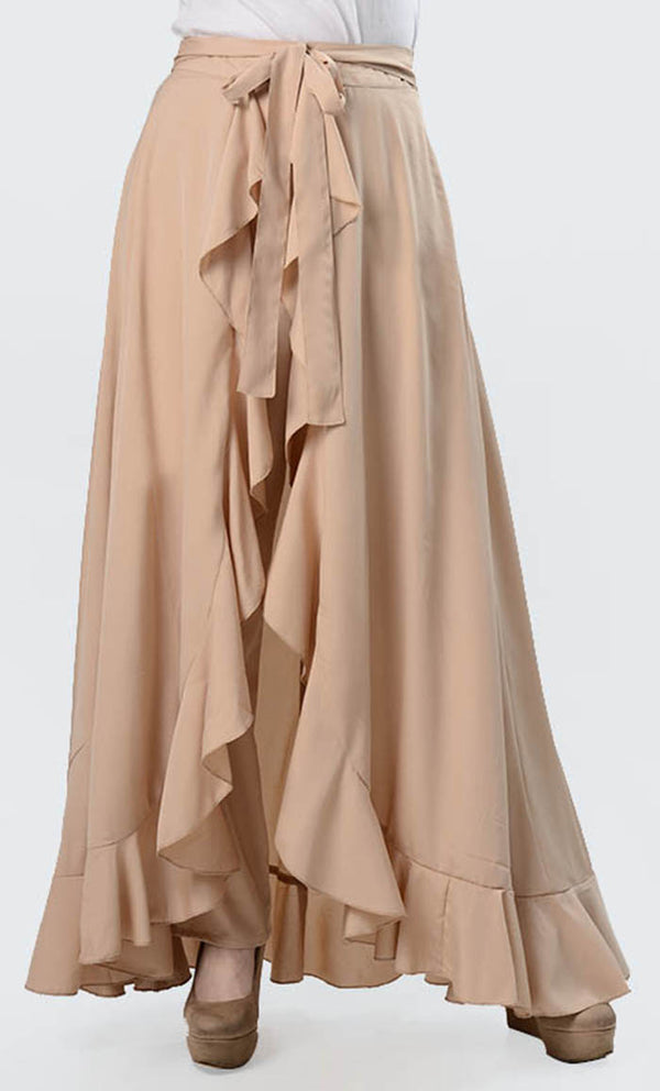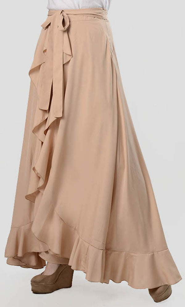 تنورة الخريف اليومية ذات الكشكشة - رملية