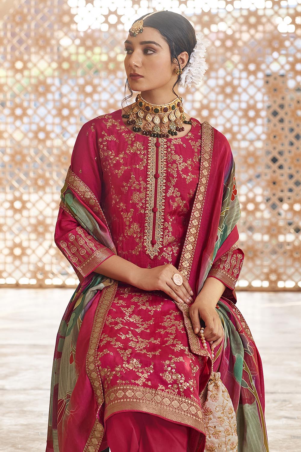 Women’s Party Wear Silk Embroidered Kurta Pant Dupatta Set