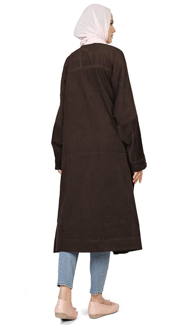 تونيك نسائي إسلامي طويل من قماش مخملي بني دافئ