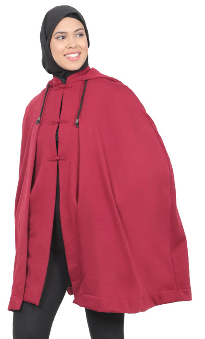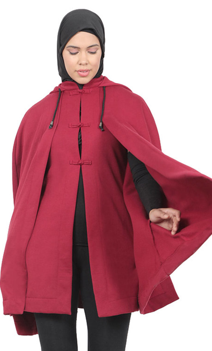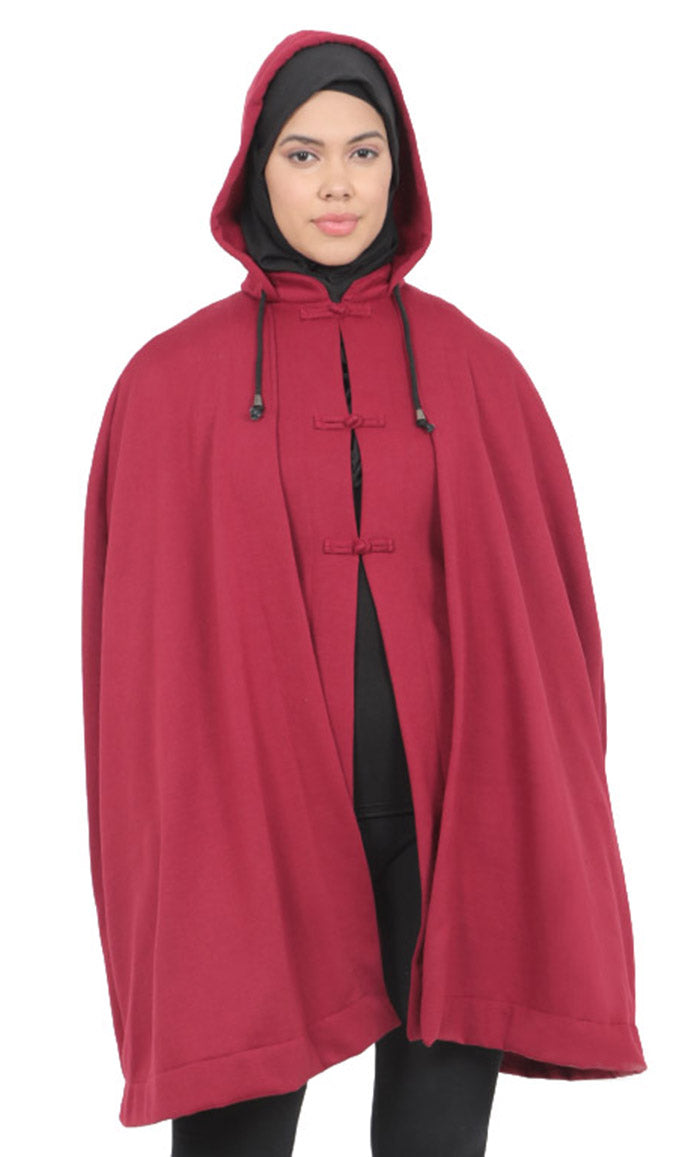 Wrap yourself in cozy comfort with this Maroon fleece hooded cape jacket, a perfect blend of warmth, elegance, and modest style. Made from premium soft fleece, this cape-style jacket offers excellent insulation for chilly days while maintaining a lightweight feel.