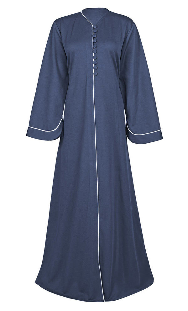 Women's Comfortable Blue Kashibo Basic Button Down Abaya With Pockets - EastEssence.com