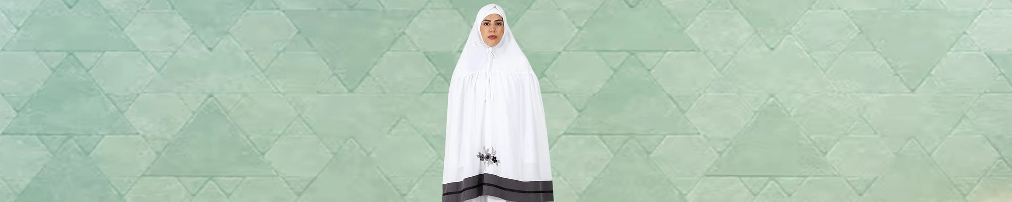 Specifically designed for women to conduct their prayers comfortably, our niqabs and khimars come in an array of beautiful colors, like sand, black, grey, maroon, white, blue, brown, olive, lavender and pink. You can also make your choice from a variety of plaid, floral and mixed-color prayer dresses, stylish and comfortable, available at the most attractive rates.