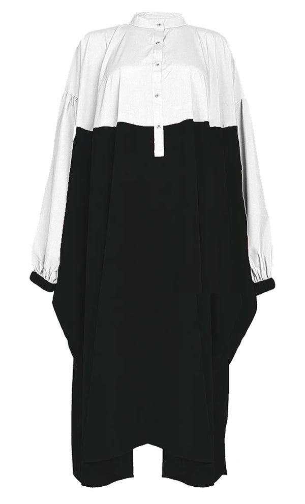 Beautiful Black And Grey Contrasted Asymmetrical Abaya & Kaftan - EastEssence.com