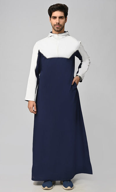 Buy Mens Islamic Contrasted Thobe/Jubba With Pockets And Hood - Final Sale