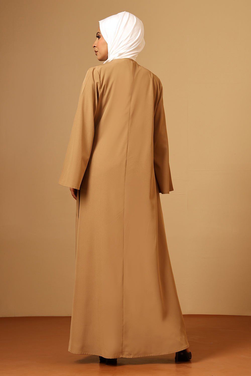Make a refined statement with this elegant Nida Double Layered Abaya, designed with a flowing cape-style outer layer and a contrasting black inner lining. The layered construction adds depth and sophistication, while the soft Nida fabric ensures graceful drape and all-day comfort.