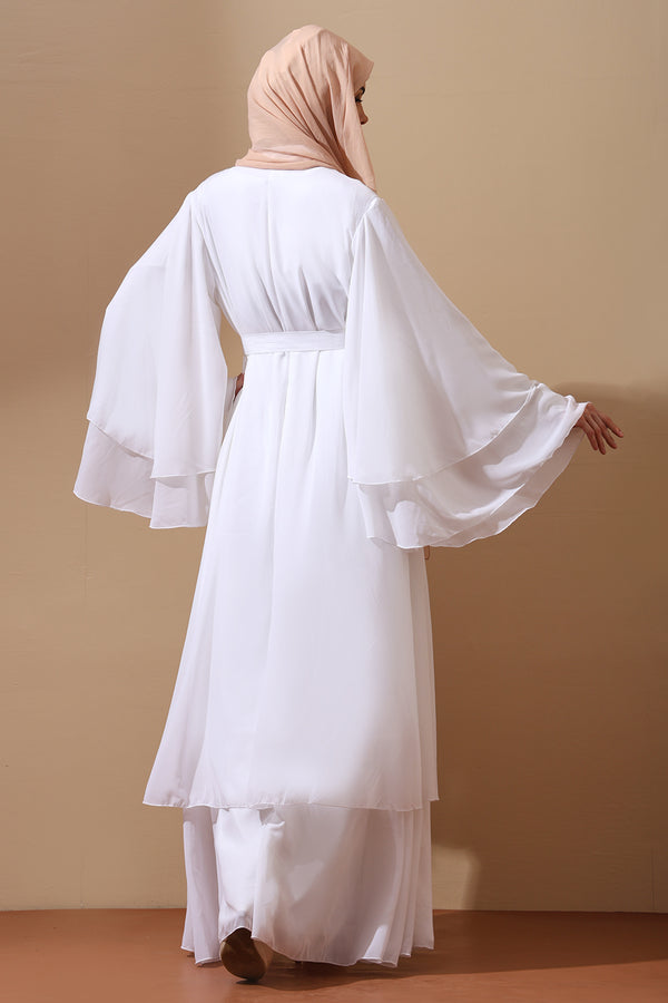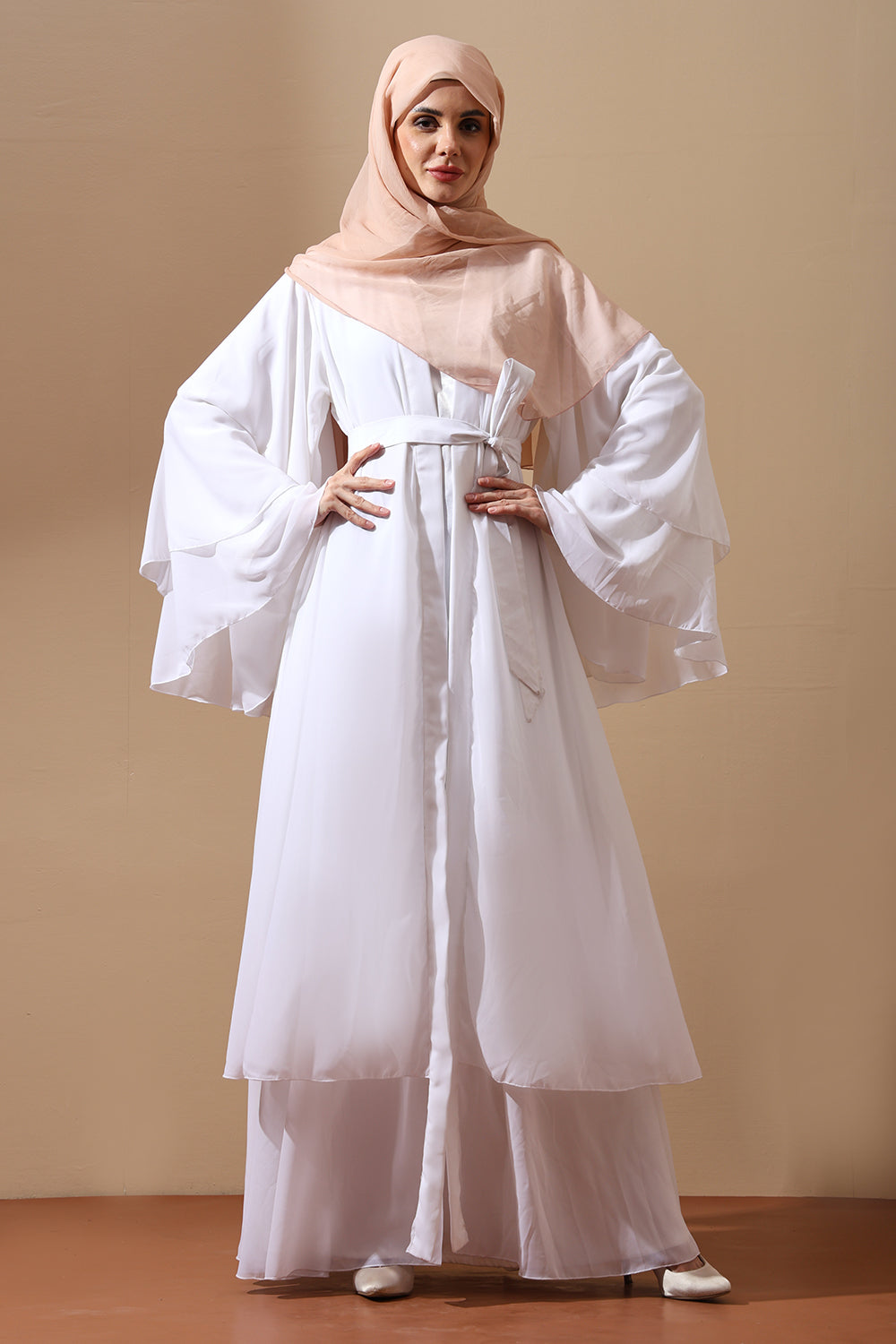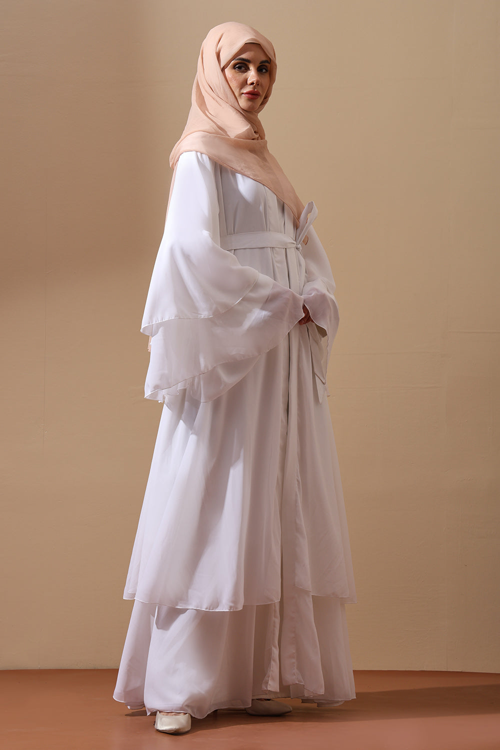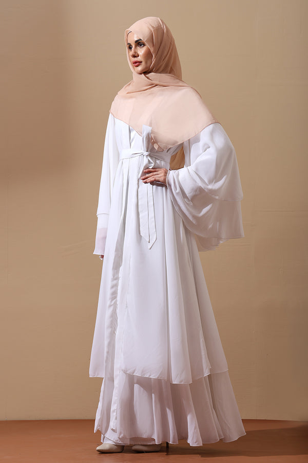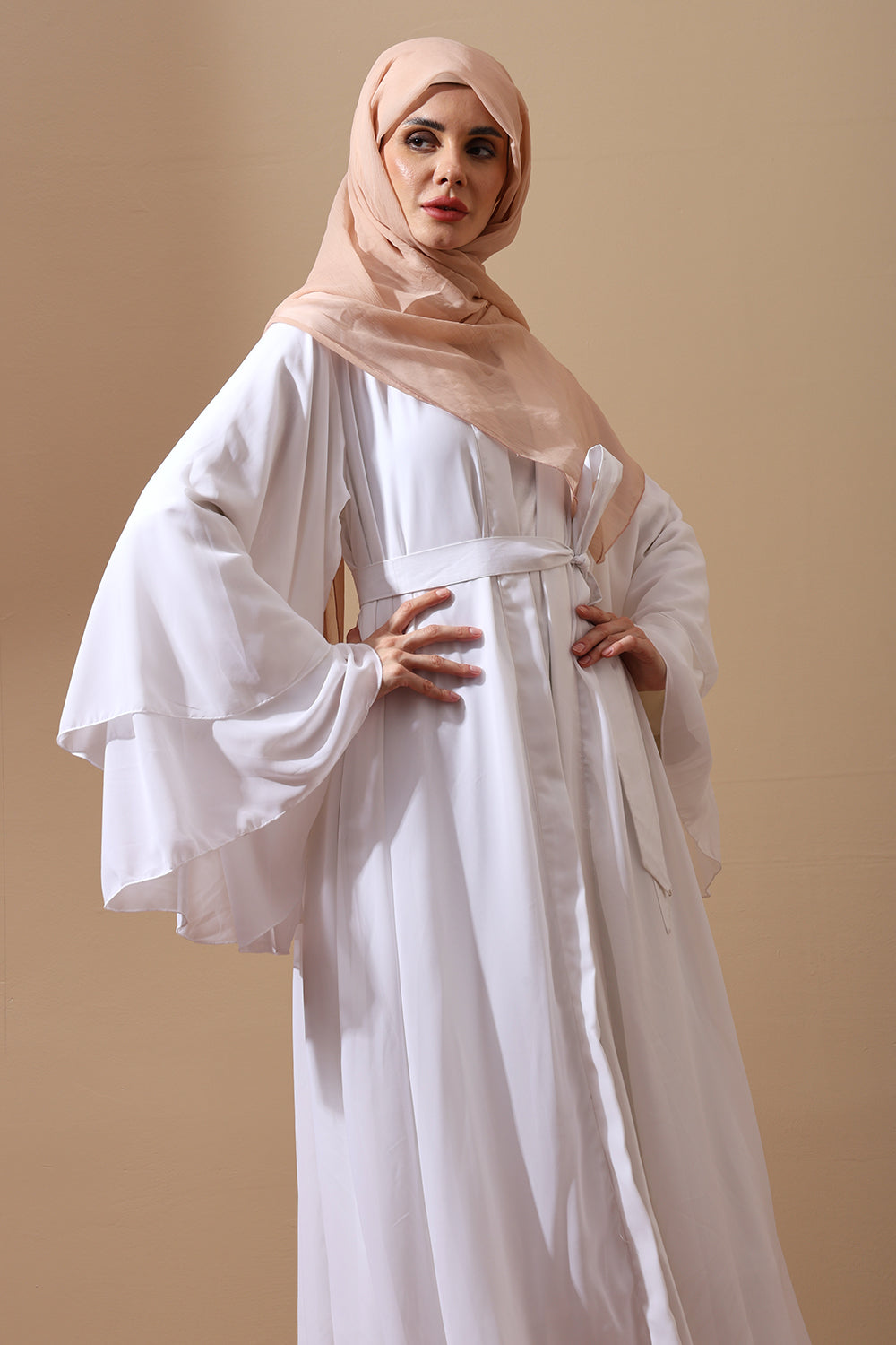 Float with elegance in our White Layered Abaya Dress with Angel Sleeves, designed to make you feel ethereal and empowered. This standout piece features dramatic layered sleeves that create a soft, flowing silhouette with every movement.Slip-on with inner lining?