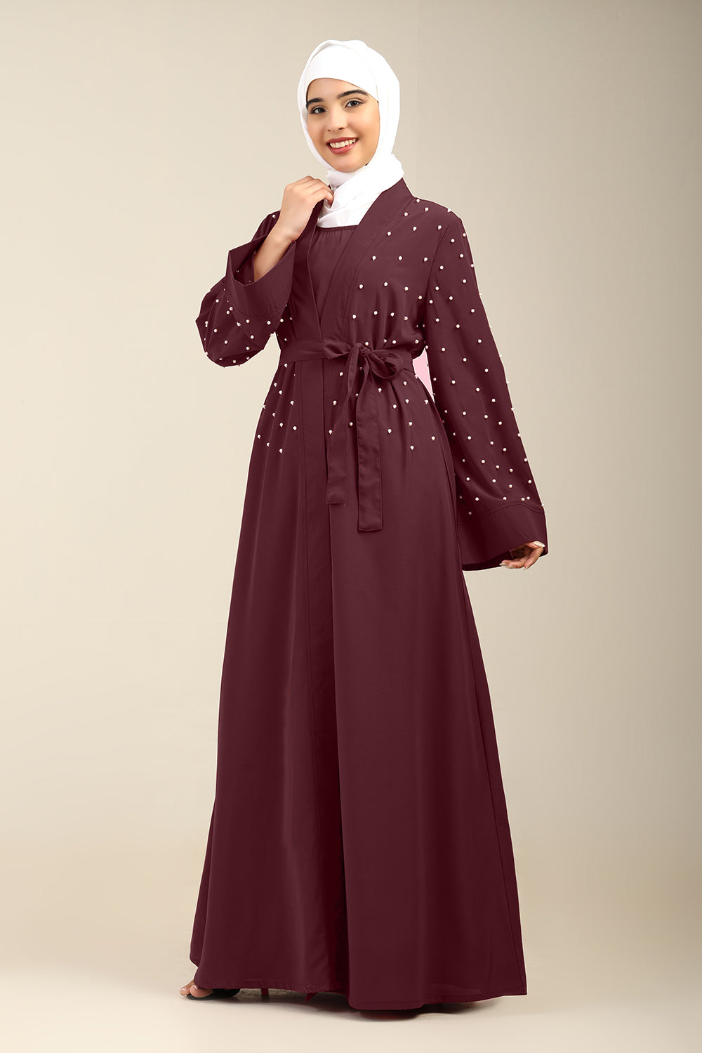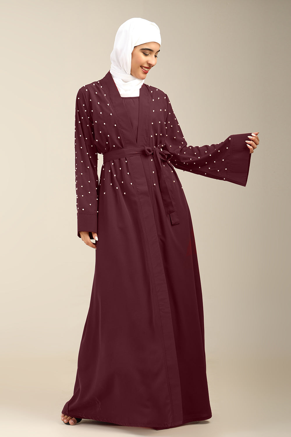 Women’s Firdous Beaded Shrug Style Abaya with Inner & Belt