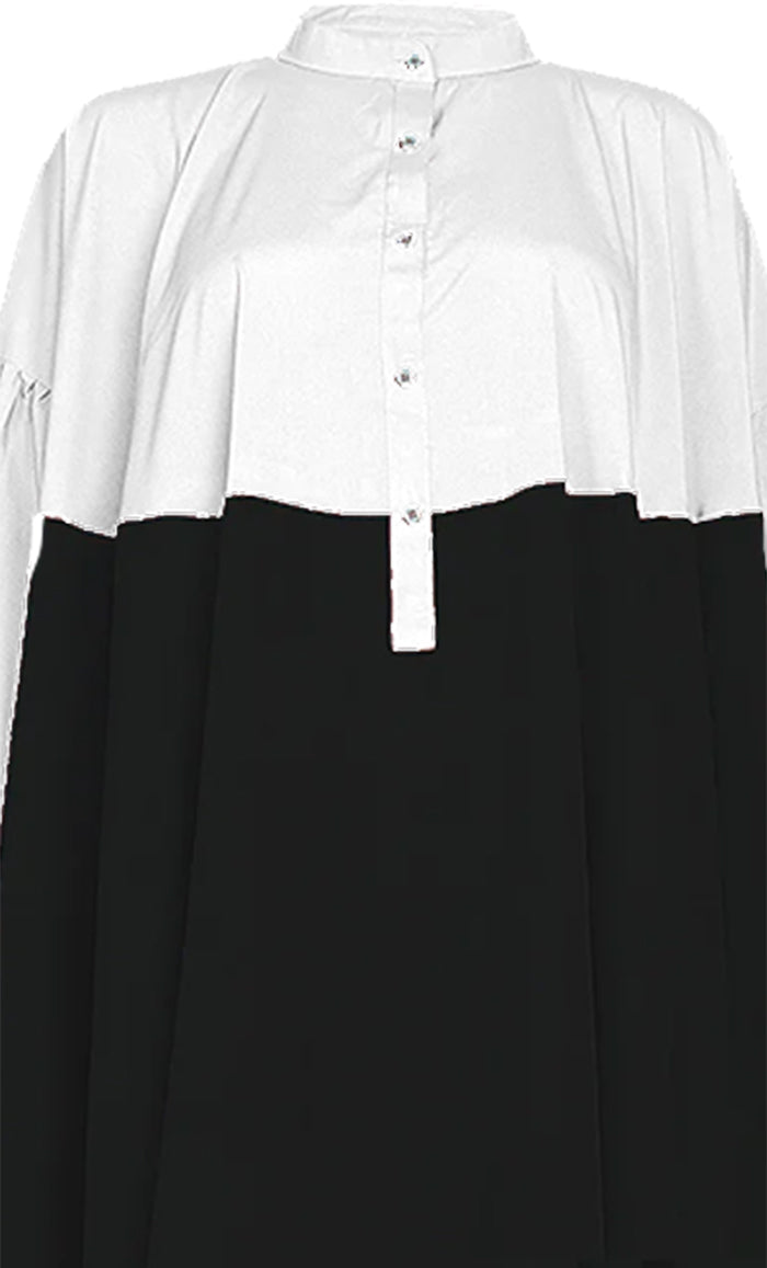 Women's Basic Black Contrasted Kaftan Style Tunic