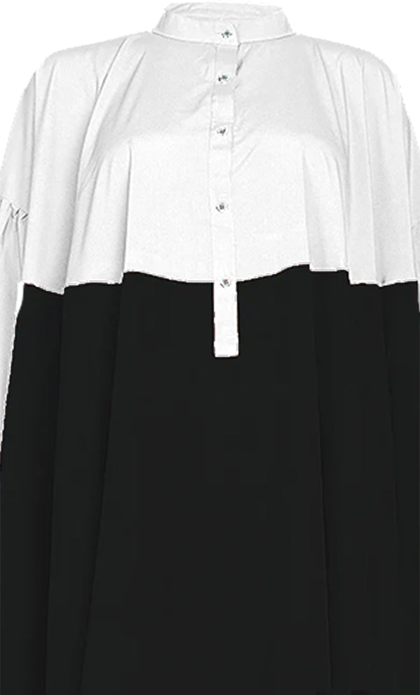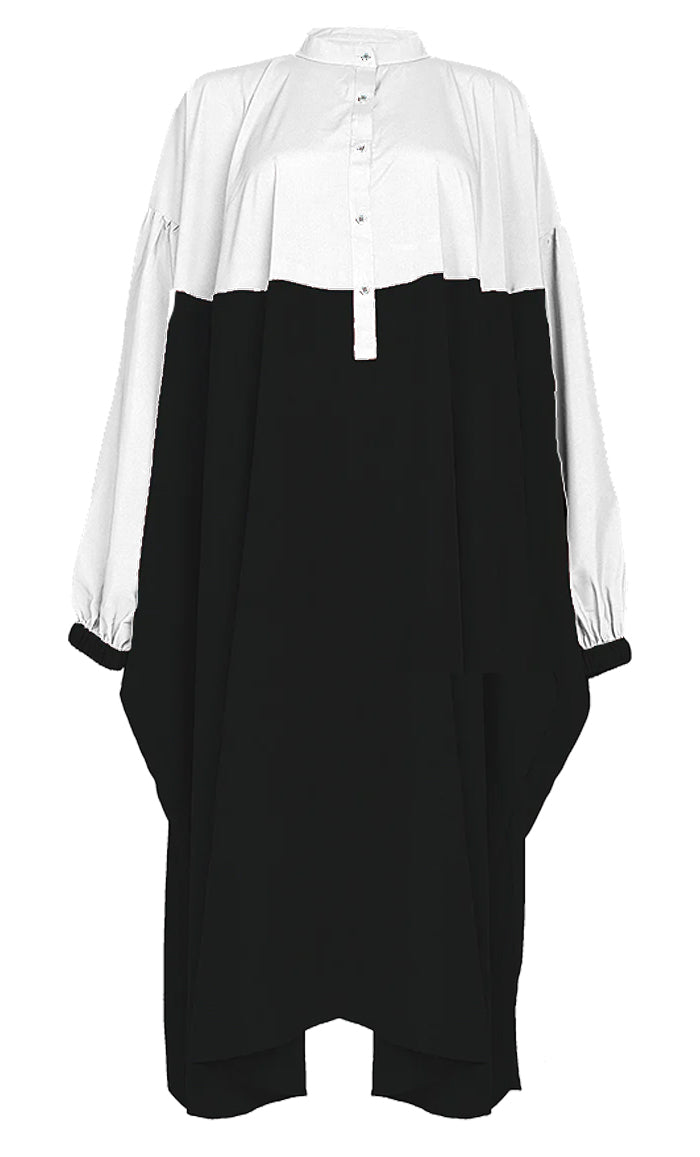 FEEL MODEST AND COMFORTABLE for your left every occasion. Our fabric is a premium fabric, with a rich feel & texture and is flow, opaque and with a great fall. Be each day comfortable with beautiful modest long tunic. It has a ben neck with front buttons and detailing by contrasted colors, full kaftan style sleeves, Round hem and included pockets for your better utility.