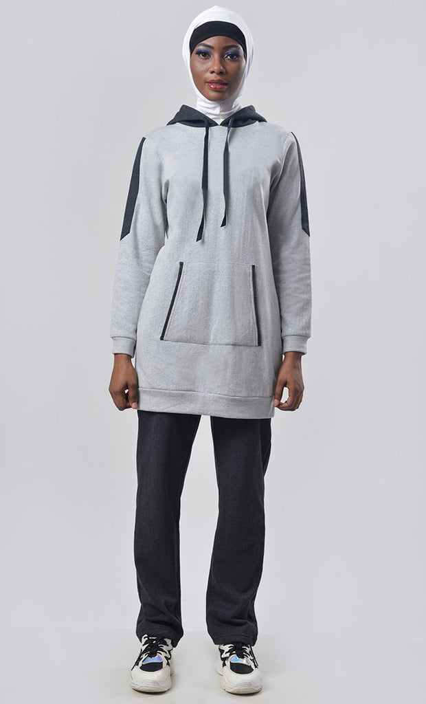 Perk up your after-hours style with this veratile trendy set which features of stripes on sleeves and detailing with piping on pockets at the front. And black dori/tape added on the hoodie. This Contemporary set will help you ace almost any sports activity. Pair it up with a cute sports shoe to look your best.