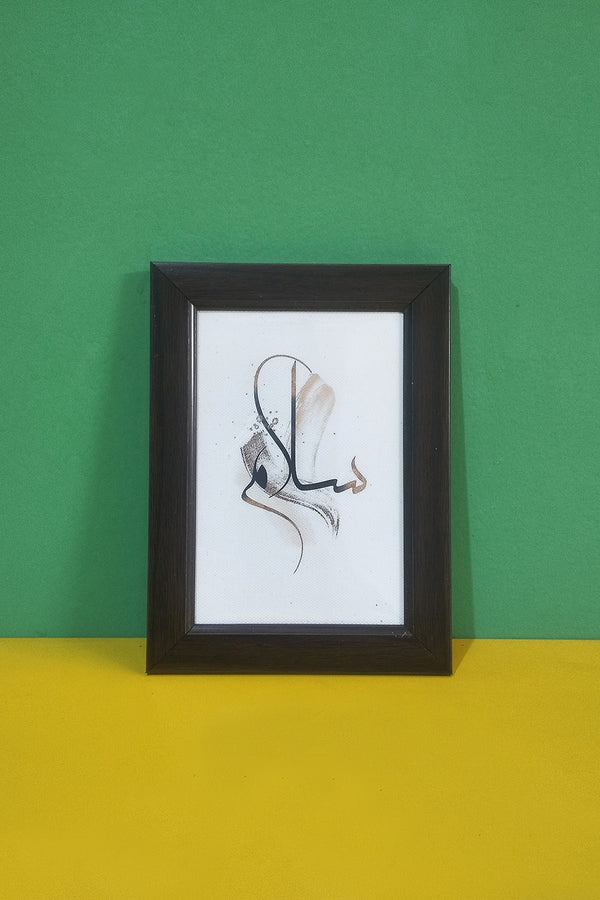 Add a touch of serenity and sophistication to your home with this minimalist Arabic calligraphy wall painting. The artwork features graceful calligraphy of Salam layered over warm abstract tones, creating a harmonious blend of faith and contemporary design.