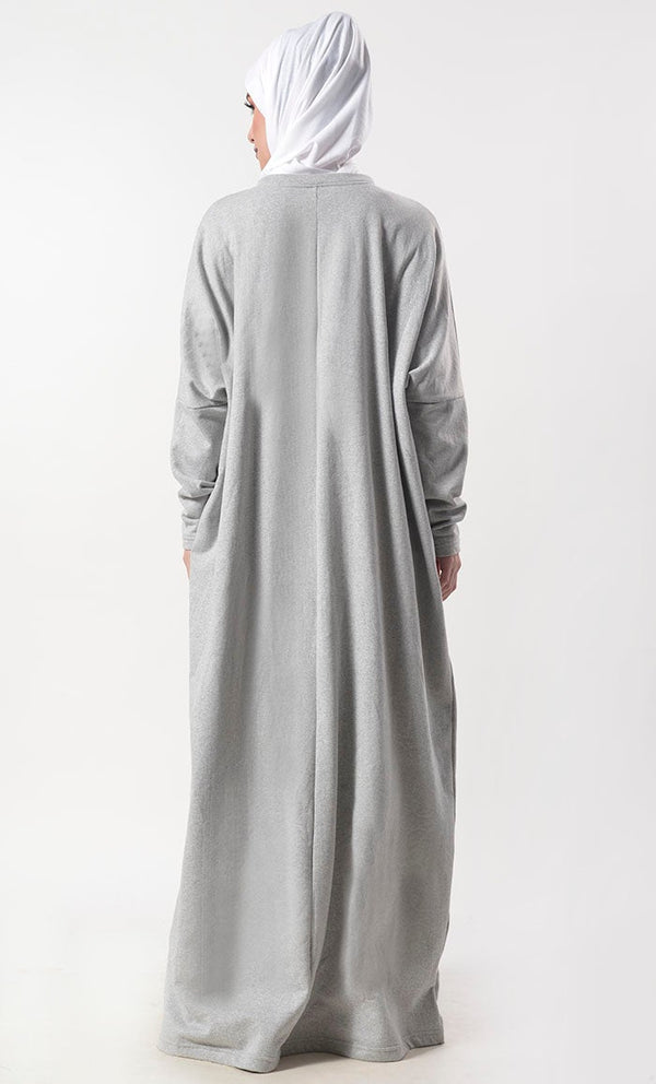 Be each day warm with beautiful basic fleece abaya .It has a round neck .Abaya has full sleeves and pockets for better utility