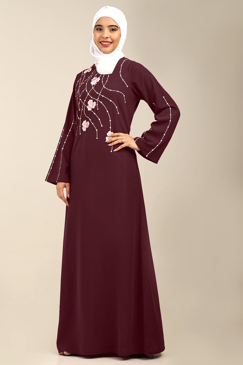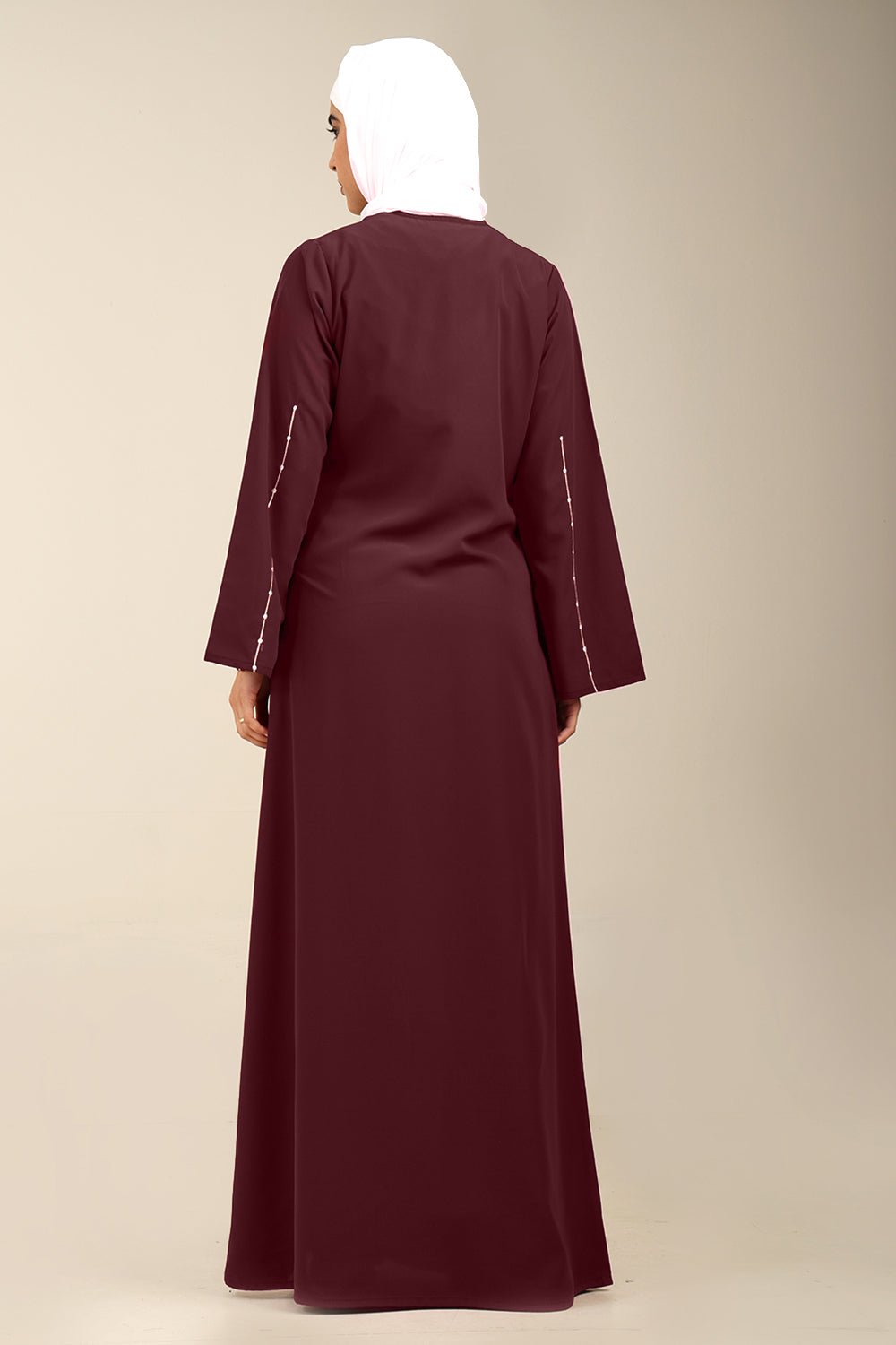 Add timeless elegance to your modest wardrobe with this Firdous Sequined Embroidered Abaya, designed for graceful everyday wear and special occasions.
