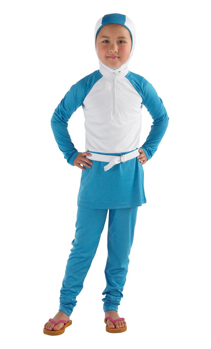 Girl Blue and white Swimwear set with belt