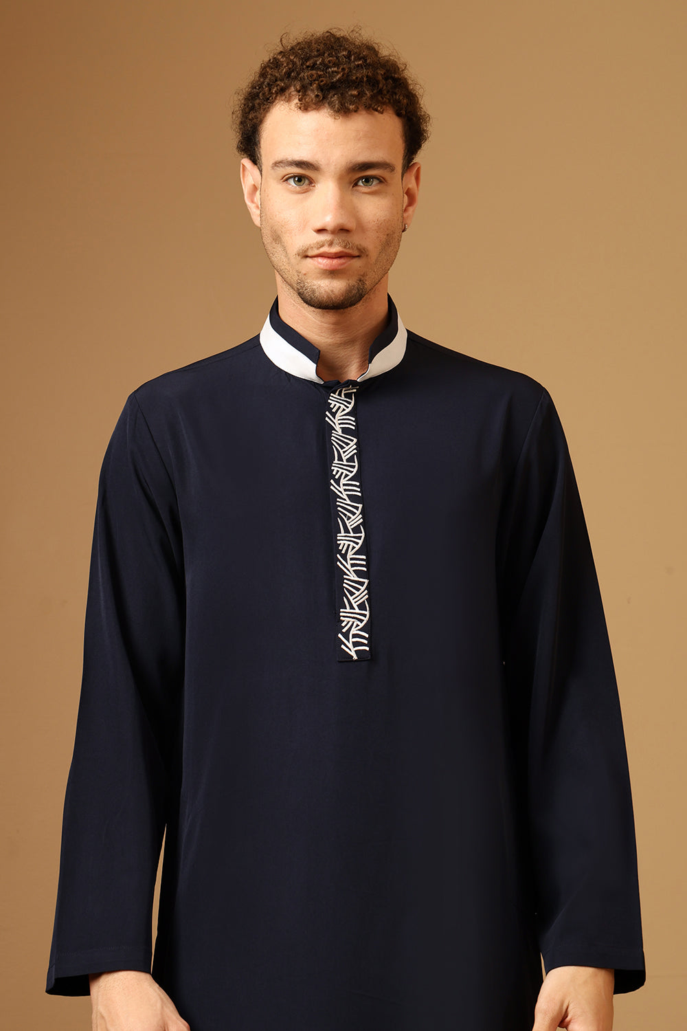 Crafted for refined traditional dressing, this premium Nida thobe blends sophistication with modern elegance. Designed with a sleek slit collar and detailed embroidered chest panel, it offers a minimal yet distinguished look perfect for special occasions.
