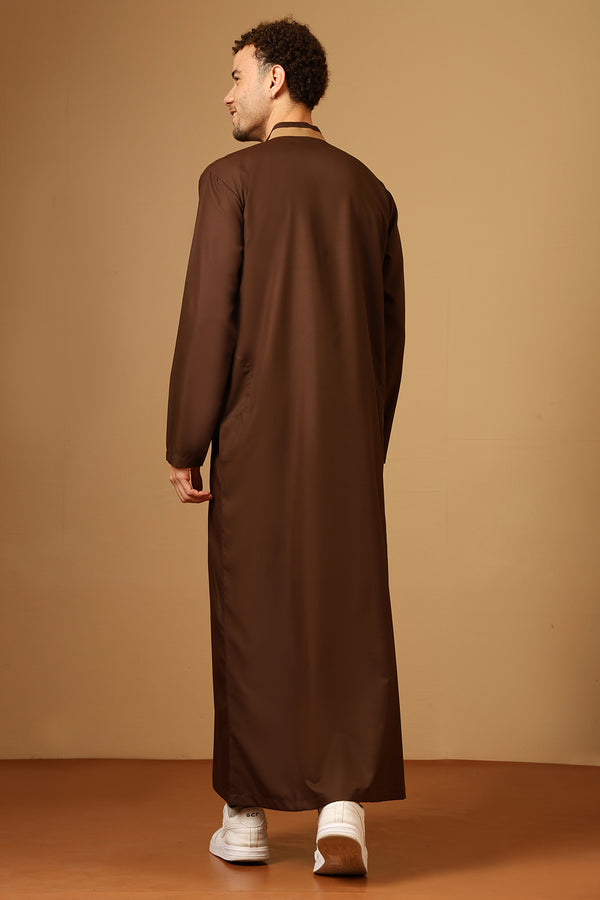 Men’s Polyester Poplin Thobe with Embroidered Accent Placket
