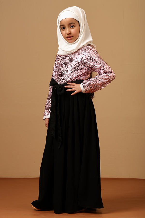 Girls Nida Abaya Dress with Sequined Top