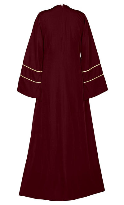 Women's Beautiful Maroon Abaya With Golden Lace Detailing And Included Pockets - Final sale