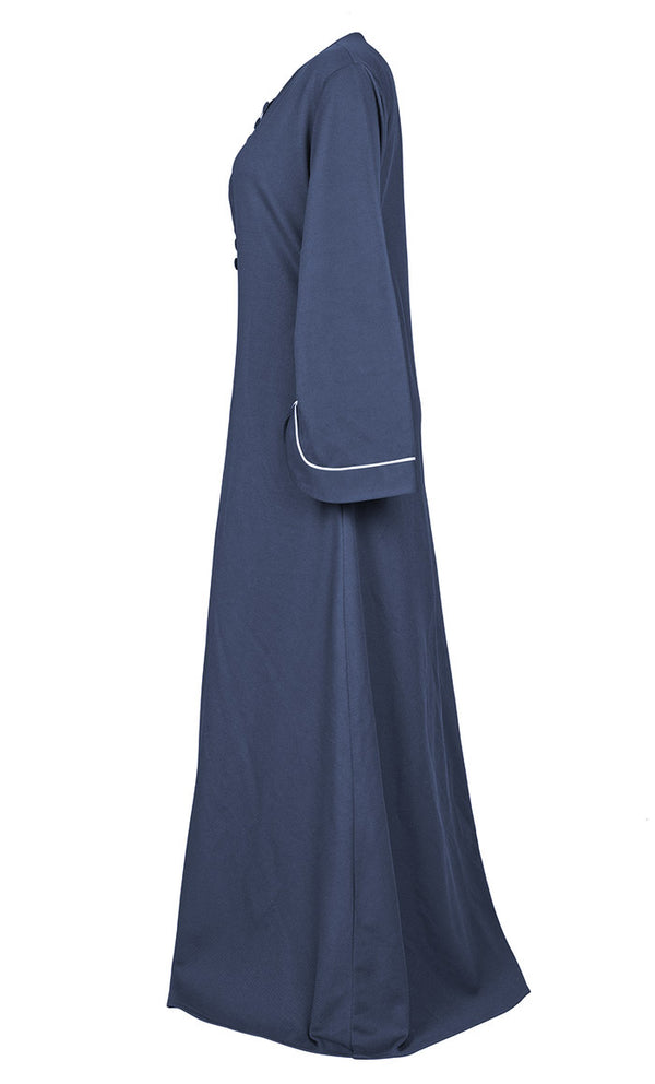 WARM CORDUROY Front Button Down Abaya With White Piping